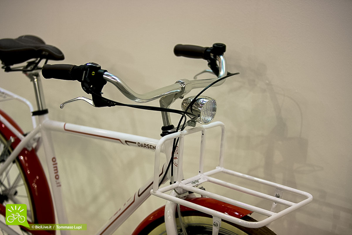 Da Olmo, storica casa di Celle Ligure, abbiamo scelto la Darsena: disponibile sia uomo che donna, ha un telaio in alluminio e forcella in acciaio, quindi è più leggera della precedente versione, tutta in acciaio. Una city bike dalle coperture che ci hanno colpito, le Fat Frank di Schwalbe dallo spessore generoso per viaggiare sicuri anche sul pavé.