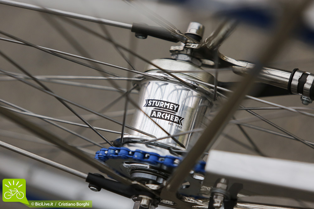 Richiama un passato italiano elegante pur presentando soluzioni moderne come il cambio interno Shimano TX 35.