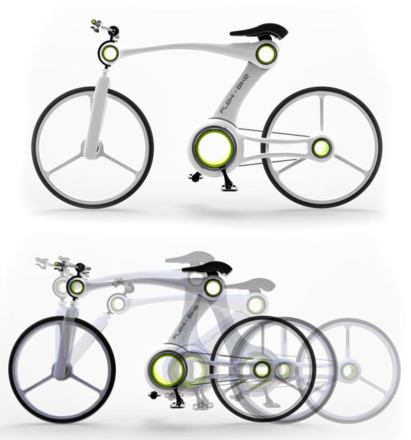 Flexi Bike di Hoon Yoon, una bici flessibile e di design Alberto Pezzali 13 Ottobre 2014 Bike News Si chiama Flexi Bike e potrebbe rivoluzionare tutto. È il risultato dell’icontro tra la passione per le due duote e il design più sperimentale, quello quasi estremo. Il design è quel fattore capace di rivoluzionare ogni certezza, di cambiare da un momento all’altro le carte in tavola. La Flexi Bike, infatti, è molto lontana dalle originarie forme di una bicicletta, ma l’idea è davvero geniale. L’autore di questa opera è il designer Hoon Yoon. Il telaio si snoda di fatto in tre punti. Dimentichiamoci della classica forma di una bici, qua è tutto diverso. Tre tubi singoli che non sono saldati tra loro, bensì collegati ad uno snodo che rende il telaio allungabile e accorciabile a seconda della propria esigenza. Tutto il meccanismo è comandato da un display a led posto sull’attacco manubrio. Tramite esso si può regolare la flessibilità del mezzo, tenere sotto controllo le distanze, i tempi e le calorie bruciate. Davvero qualcosa di molto innovativo. Siamo curiosissimi di vedere questo mezzo del futuro sulle strade.