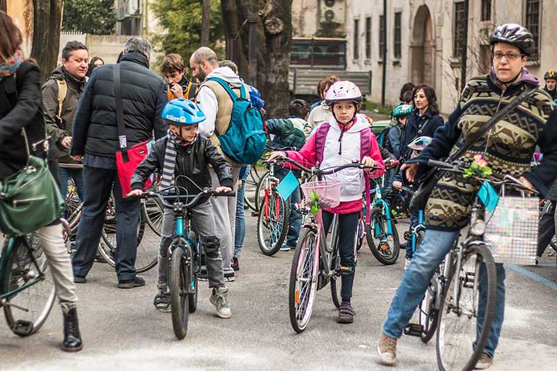 In bici a scuola a “Fa’ la cosa giusta” bicilive.it 27 Marzo 2014 Eventi Accompagnare tuo figlio a scuola in bicicletta a Milano in sicurezza e allegria… Milano, 26 marzo 2014 - In bici a scuola, che non è un’associazione ma gruppi spontanei di genitori che si organizzano per accompagnare i propri figli a scuola in bicicletta, sarà presente a Fa’ la cosa giusta (area Pianeta dei piccoli), che si svolgerà a Milano dal 28 al 30 marzo 2014 nei padiglioni di FieraMilanoCity. In collaborazione con La stazione delle biciclette, In bici a scuola allestirà un’area circuito dove far pedalare i bambini e illustrare le regole base della sicurezza stradale (in collaborazione con Fiab Ciclobby) e uno spazio ricreativo con laboratori dove realizzare magliette e altri oggetti che raccontino l’esperienza delle pedalate verso la scuola. Due progetti speciali renderanno i bambini (e i loro genitori) ancora più consapevoli del mezzo e delle strade: i corsi di baby ciclofficina (per rendere autonomi nelle riparazioni base della bici) e i laboratori dedicati alla realizzazione di cartelli stradali a misura di bambino, che saranno poi utilizzati nei percorsi quotidiani verso la scuola. Dopo il lungo inverno nel quale sempre più gruppi hanno aderito alle pedalate mattutine, testimoniando concretamente che la bicicletta non è un mezzo di trasporto solo primaverile. La partecipazione a Fa’ la cosa giusta sarà anche l’occasione per raccontare (anche attraverso centinaia di foto che saranno esposte in fiera) a un numero maggiore di persone come si può organizzare un gruppo che trasformi andare a scuola con i propri figli in un modo fantastico di iniziare la giornata. In bici a scuola ha coinvolto, da ottobre 2013 a oggi, 15 scuole milanesi, realizzato oltre 70 pedalate, accompagnato a scuola centinaia di bambini e partecipato a due eventi nazionali (a fine novembre e a fine gennaio) con scuole di Bologna, Firenze, Napoli, Roma e Torino. In bici a scuola a Milano? Si può fare! Per maggiori info: inbiciascuola.it