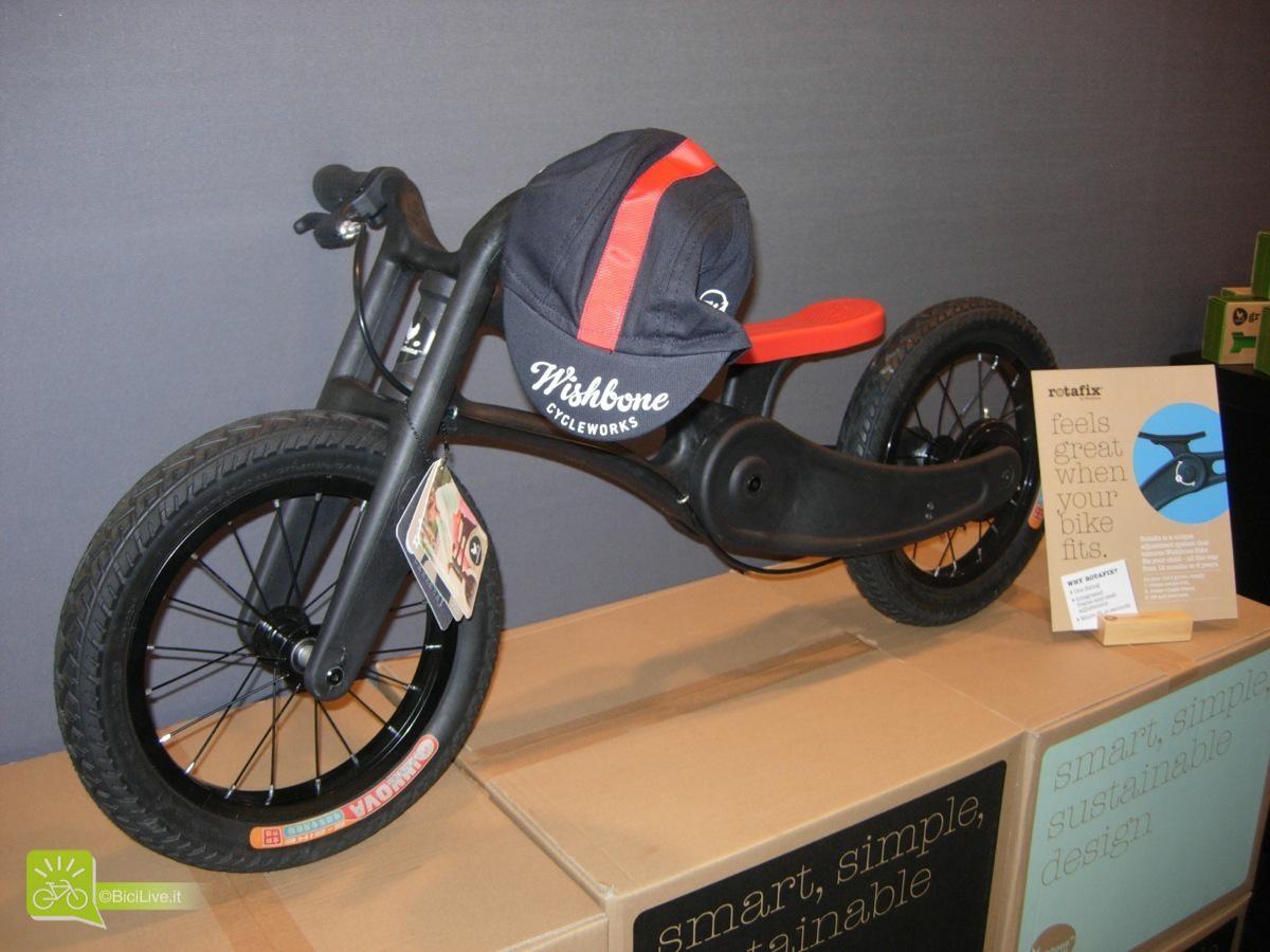 Wishbone Design Studio le bici senza pedali 3 in 1 dalla Nuova Zelanda Aldo Reynaudo 9 Settembre 2014 Anteprime Un bimbo piccolo cresce in fretta, spesso non è facile trovare la giusta misura di una push bike che sia giusta per il bimbo e possa durare più di pochi mesi. Le Wishbone in questo senso sono geniali, con lo stesso telaio è possibile creare uno stabilissimo triciclo, una push piccolo o invertendo il telaio una push molto più alta per bimbi più grandicelli, in più l’altezza della sella è regolabile su diverse posizioni. Una bici che si adatta al bimbo, non il contrario. Due versioni in legno, anche colorato, e materiale plastico riciclato, decisamente molto cattiva, customizzabili con set di adesivi, manopole e seat covers colorati e targhette per il nome del bimbo da inserire sul manubrio. Completano più micro jersey e cappellini in versione bimbo e bimba.