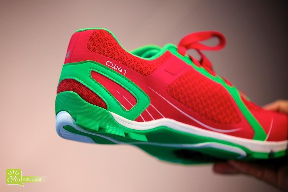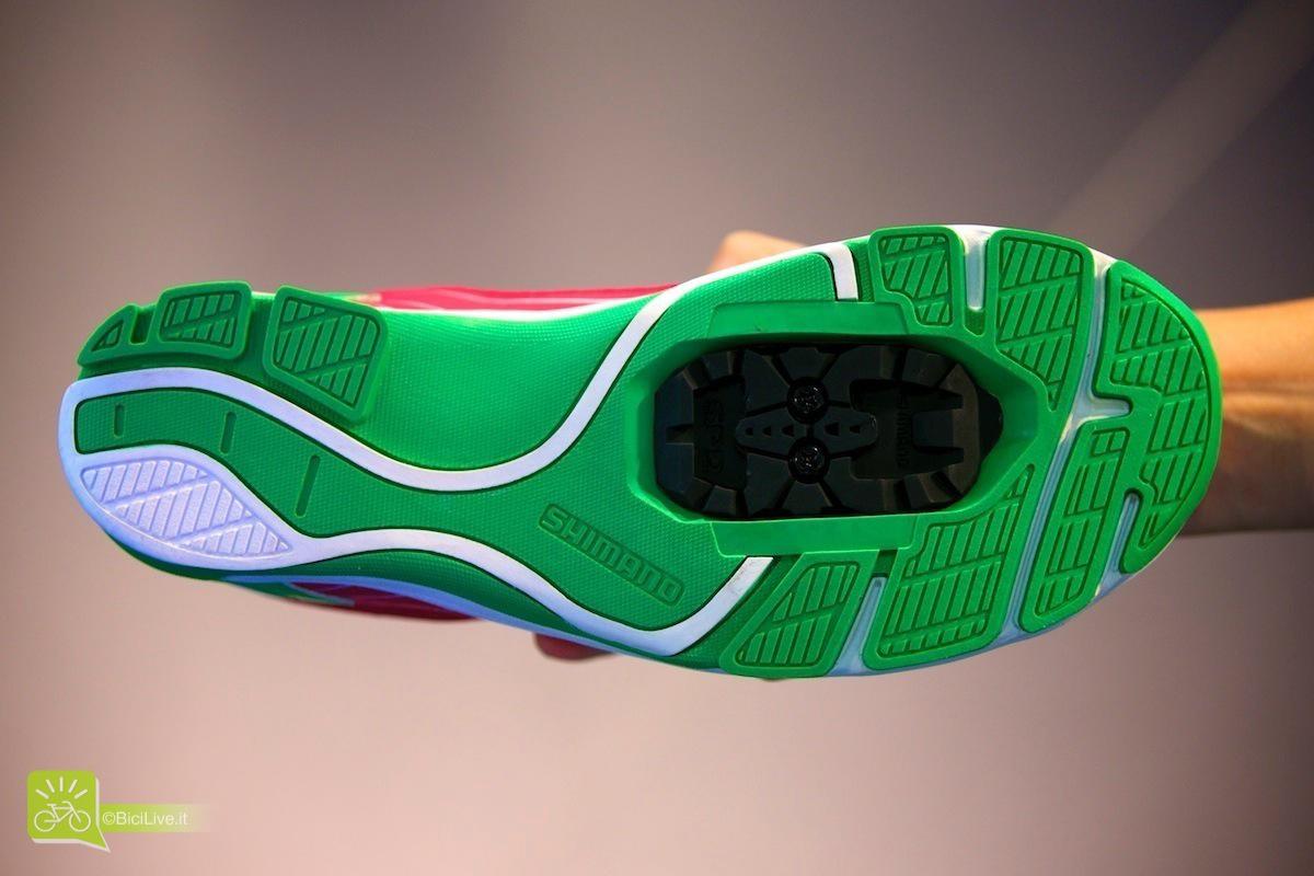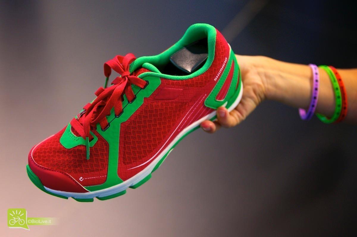 Shimano propone le scarpe SH-CW41 ottimizzate per il sistema integrato di pedali Shimano Click’r che facilita lo sgancio ai ciclisti meno esperti. È inoltre possibile utilizzarle in modalità pedali flat.