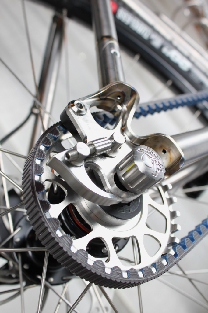 Gates Carbon Drive: il silenzio della trasmissione a cinghia Alberto Pezzali 17 Gennaio 2014 Anteprime Il punto di forza del Carbon Drive, sta nel suo “cuore”, chiamato CenterTrack, una fascia spessa 11mm composta da fibra di carbonio che lo rende molto più resistente delle classiche catene. Logicamente il carbonio è solo nel cuore, gli strati esterni sono mixati con del poliuretano. “Smooth as silk”. No, non è la pubblicità di una costosissima compagnia aerea, ma di un prodotto che potrebbe cambiare la concezione di pedalata e di trasmissione. La Gates Corporation è un’azienda americana con le idee molto chiare: il futuro è la trasmissione a cinghia. Forti di più di un secolo di presenza sul mercato, i ragazzi di Gates hanno deciso di lanciare la prima pietra di una rivoluzione in quello che è il campo delle trasmissioni. Hanno ideato, progettato e prodotto il Gates Carbon Drive, una cinghia dalla chiara derivazione motociclistica. Il concetto di portare nel mondo delle bici la trasmissione delle moto, è stato perfezionato, aumentando così il range di compatibilità del sistema con quanti più modelli possibili. Il sito di ufficiale, non mette a disposizione solo le cinghie. Ha un’intera gamma di prodotti per portare avanti questo rivoluzionario concetto. Sono in vendita, infatti, anche corone sia anteriori che posteriori. Le prime sono disponibili in versione da da 22 a 60 denti per una personalizzazione infinita, adatta per ogni tipo di utilizzo. I pignoni vanno dai 19 ai 34 denti. È stato anche pensato l’allestimento tandem, don tanto di corona doppia e robbia cinghia. L’adattabilità di questi prodotti spazia in un range di più di 200 bici, dai modelli da strada alle MTB, non disdegnando nemmeno i tandem. Il Gates Carbon Drive si può montare sia su single speed, sia su bici con il cambio interno al mozzo. Sono anche in vendita degli interessantissimi accessori, come il misuratore di tensione, sia meccanico che digitale. Davvero utile è l’app per smartphone che serve a misurare la tensione ed altri parametri semplicemente inserendo il numero di denti delle corone e della cinghia. Trasmissione a cinghia in carbonio: i vantaggi Magari non saltano subito alla mente, ma se ci si pensa non serve più oliare la catena con costanza, è decisamente più duraturo di una catena tradizionale e sicuramente molto più leggero. Ah, non dimentichiamoci che pedalare diventerà incredibilmente silenzioso. Info e foto: gatescarbondrive.com
