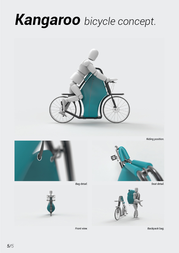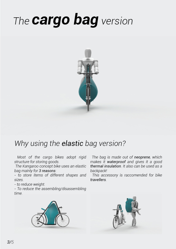 L’idea proposta sulla Kangaroo Bike Concept è in sè molto semplice, ma solo in apparenza. In questa nuova bicicletta cargo stato completamente rivoluzionato un telaio nelle sue forme, e nella sua funzionalità. Via la catena, la guarnitura viene direttamente posta sul mozzo posteriore.
