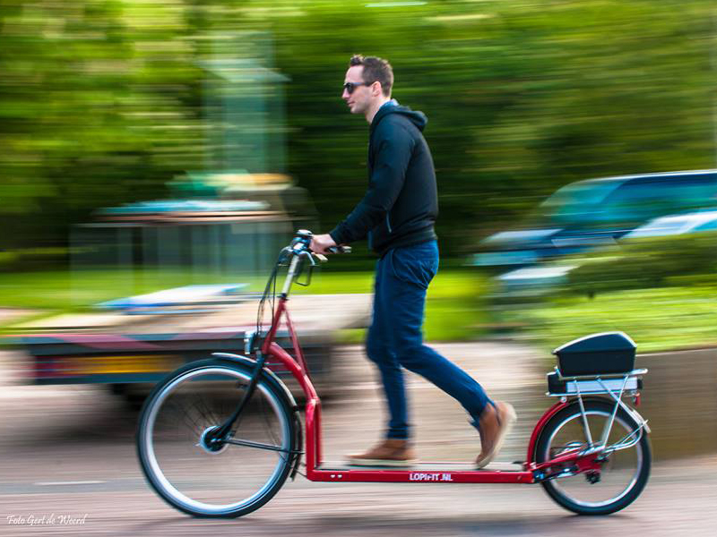 Lopifit, la bicicletta tapis roulant che cammina! bicilive.it 17 Maggio 2016 Anteprime È ormai passato un anno e mezzo da quando urban.bicilive.it scrisse le prime informazioni su Lopifit, la fitness ebike che abbiamo definito “a camminata assistita” in quanto dotata di un tapis roulant: da allora questo modello di bicicletta elettrica è stato introdotto sul mercato con molta fortuna ed è arrivato anche in Italia. Potete infatti provare Lopifit e le nuove proposte StepperBike ed ElliptiGo presso il Test Centre di Porto di Brenzone sul Garda. Vediamo cosa scrivevamo al tempo, integrando quindi con quel che abbiamo scoperto su Lopifit nel frattempo… Le origini di Lopifit, la “bici che cammina” L’idea è venuta a un signore olandese stanco di usare il tapis-roulant chiuso in casa. In un piccolo villaggio in Olanda il signor Bruin Bergmeester ha inventato quello che potrebbe essere definito sia un e-monopattino versione extra-large sia un tapis roulant con le ruote, il risultato è un’ebike sicuramente non comune: non si pedala ma si cammina sulla bici! Il mezzo è lungo 2,3 m ed il movimento sul nastro attiva un sensore che comanda il motore da 250W applicato alla ruota posteriore che ha un diametro di 20″, diversamente da quella anteriore che è da 28″. Ne ha costruite 5 finora e viene usata con soddisfazione anche dalla moglie, che all’inizio era abbastanza scettica… Lopifit bike è oggi disponibile in Italia Quei cinque esemplari costruiti al tempo hanno portato fortuna a Bergmeester: Lopifit è ora ben conosciuta e per la produzione e vendita sono stati scelti componenti di alta qualità quali il cambio Shimano, una batteria Samsung agli ioni di litio e il motore brushless Quantum da 250W (Accu 36V – 17Ah). Volendo trovare qualche difetto in Lopifit occorre segnalare il peso, ben fuori dalle medie cui siamo abituati quando parliamo di biciclette elettriche, visto che ci aggiriamo intorno ai 55 chilogrammi a causa della presenza del tapis roulant e del telaio in acciaio. Lopifit è commercializzata in Italia in sei colori diversi (rosso, arancio, nero, blu, bianco, argento) e viene venduta con una garanzia di due anni: è disponibile anche un video che ne illustra le caratteristiche salienti. Per maggiori informazioni e prezzi su Lopifit e sui nuovi modelli di fitness bike ElliptiGo e StepperBike, così come per concordare eventuali prove e acquisti, è possibile visitare il sito ufficiale italiano di Lopifit. La Lopifit bike ha conquistato anche Verona, una delle città più legate alle biciclette in Italia: a breve ne parlerà anche Wikipedia?