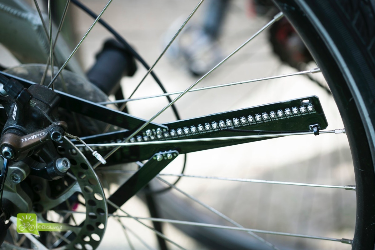 Luci bici: soluzioni di illuminazione laterale Bike 4 Light Matteo Cappè 14 Maggio 2015 Anteprime Il tema della sicurezza in bicicletta sulle strade è davvero molto delicato. La bici non è solo un mezzo “vulnerabile”, ma è anche poco visibile, soprattutto di notte e senza le giuste precauzioni: un kit luci bici è indispensabile, un kit di luci laterale rende ancora più visibili. Durante il giorno il ciclista deve costantemente schivare pericoli, come portiere che si aprono all’improvviso, cofani di auto che escono troppo allo stop ed evitare di essere schiacciati dagli autobus che, goffamente, cercano di sorpassarci per poi accostare venti metri dopo. Il ciclista urbano di giorno è abbastanza visibile, anche se poco rispettato da molti utenti della strada. In bici di notte Quando inizia a far buio però i pericoli aumentano. Non solo vanno tenuti ben aperti gli occhi per i pericoli sopra citati, ma dobbiamo anche prendere le giuste precauzioni per essere ben visibili dagli automobilisti. Non voglio far riferimento al codice della strada in questo articolo ma faccio riferimento al buon senso e all’istinto di sopravvivenza. I fari e fanali delle auto sono molto potenti mentre le bici non hanno fari potenti o sistemi di illuminazione ben visibili. Questo per una mancanza di cultura generale della bici e di una sottovalutazione generalizzata del rischio di non essere visti di notte: diamo poca importanza a questo aspetto e difficilmente spendiamo più di 20 euro per un kit luci bici. Le luci in dotazione sono spesso insufficienti, il minimo indispensabile per essere a norma. Sì, è obbligatorio indossare il giubbotto ad alta visibilità o le bretelle retroriflettenti, ma basta? Le luci anteriori e posteriori bastano a renderci visibili? Faccio solo un esempio: le bretelle o altri dispositivi catarifrangenti se non vengono illuminati dai fari non permettono di essere visti. Cioè, una macchina allo stop (se noi giungiamo sulla strada perpendicolare a quella dell’auto) ha i fari in tutt’altra direzione e non ci illuminerà! I fari posteriori spesso sono molto piccoli e se un’auto giunge molto velocemente (ad esempio da dietro una curva) non fa in tempo a vederci e rendersi conto della nostra presenza. Bike 4 Light: una bella idea Roberto Perzy non era un ciclista ma lo è diventato per necessità dopo un brutto incidente proprio in bici. Si è prima appassionato alle due ruote durante la riabilitazione poi, memore dell’incidente, ha iniziato ad installare sulla propria bici delle luci per farsi vedere meglio. Ma non ha montato solo delle classiche luci frontali o posteriori, ha montato delle luci led sui raggi delle ruote. Non ha potuto fare a meno di notare di essere più notato (scusate il gioco di parole nda). Questo lo ha spinto ad importare e a dar vita ad un’azienda: Bike4 Light, specializzata nell’illuminazione laterale della bici. Bike 4 Light: ma a come funzionano? E a cosa servono? Da poco sto utilizzando il modello Butterfly sulla mia bici e la prima cosa di cui mi sono reso conto è che attiro l’attenzione. Perché? Perché le luci che vengono applicate alle ruote “si muovono”. Sono luci molto colorate che vengono percepite come luci che “rotolano” essendo applicate ai raggi. Inoltre non sono solo visibili lateralmente ma anche da dietro vengono ben percepite. A regola una bici transita sul lato destro della carreggiata e un automobilista siede sul sedile sinistro dell’auto, dunque dal punto di vista dell’automobilista la bici è percepita di ¾ e non da dietro. Le luci si notano davvero molto e attirano l’attenzione, proprio grazie al movimento circolare che fanno. Luci per biciclette Bike 4 Light: non solo per essere visti La gamma delle luci Bike 4 Light è davvero ampia, offre sia sistemi di illuminazione laterale da applicare ai raggi sia dei dispositivi posteriori con un sistema di illuminazione che proietta delle linee luminose sull’asfalto, che identificano lo spazio che occupiamo con la bici (la nostra larghezza massima). Ma non solo: altri dispositivi, più grandi rispetto a quelli illustrati sopra, permettono di creare dei veri e propri disegni, scritte o loghi che si possono programmare dal proprio computer, diventando non solo un segnale luminso molto evidente, ma anche uno strumento per fare promozione, esempio con il logo del proprio brand oppure la scritta di un locale o uno slogan. Gli effetti luminosi sono davvero molti e permettono di essere visti anche da molto lontano, qui di seguito alcuni effetti dei prodotti Bike4Light. Trovate maggiori informazioni e prezzi sui kit luci bici laterali Bike4Light sul loro sito Bike4Light.it