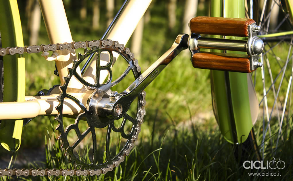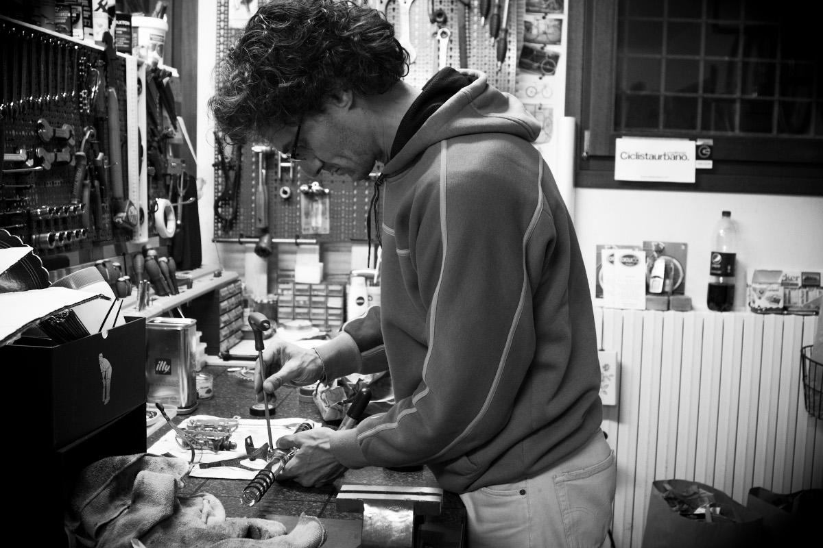 Tutte le foto ed i video sono di Matteo AvanziRestauro bici e passione: la storia di Ciclico Matteo Ganassali 18 Maggio 2015 Bike News Le opere di restauro e le parole di questo appassionato veneto ci hanno particolarmente colpito, quindi gli abbiamo fatto qualche domanda sulla passione per la bici e su come la porta avanti Già, passione, perché non è il suo lavoro, a dispetto della qualità della creazioni: usa il tempo libero e i fine settimana, nel suo silenzioso garage, immerso negli attrezzi, nei componenti, nella cura del dettaglio e nella ricerca: sì, perché dietro il restauro di ogni sua bici c’è uno studio cromatico e di componentistica non comune a tutti i restauratori di bici “appassionati da garage”. Restauro o Restyling? Restyling, parto da qui. Dietro ogni restyling c’è anche – e per forza – un restauro, nel senso che quando lavori con telai e componenti degli anni ‘70 e ‘80, devi prima sistemarli, aggiustarli, pulirli, lucidarli, verniciarli. Ma nella mia officina mi dedico soprattutto al restyling: cioè metto assieme vari puzzle per arrivare ad una bici particolare, in base a quello che ho in mente o allo stile di chi la pedalerà. Restyling, mi piace quello, sebbene il restauro conservativo sia stupendo e necessario quando trovi la bici tutta originale, solo mal messa. Se trovi una Bianchi del ’60 non puoi smembrarla, devi restaurarla. Quanto tempo ti serve per restaurare/restylizzare una bici? Sicuramente non un giorno! Ci sto dietro tanto: design, abbinamento dei colori, accoppiamento di telaio e componentistica, scelta dello stile, con qualche tocco di carattere ogni volta. Alla fine ci metto circa tre mesi, a causa dei pochi giorni al mese che ci lavoro e per la verniciatura che mi porta via un mese e mezzo. Il lavoro di meccanica richiede parecchi altri giorni, e la ricerca dei pezzi non è prevedibile! Anche perché fin quando non trovo il pezzo che dico io la bici sta ferma. Ricordo il restyling della mia “Freccia”: ero arrivato alla fine, ma i freni che avevo non ci stavano bene. Sono passati circa 40 giorni prima che trovassi i suoi, quelli che volevo io in base al design della bici. Nel caso specifico dei fantastici freni Campagnolo Victory. Adatti il lavoro “work in progress” o hai subito tutto ben chiaro? Le idee mi vengono quasi tutte all’inizio, prima di partire: è opportuno scegliere subito la strada da seguire, lo stile da dare alla bici. Ok, strada facendo puoi cambiare questo o quel particolare, ma devi decidere subito che “tipo” di bici sarà. L’errore più grande è quello di voler “mettere” dentro la bici troppe cose. No, la bici deve essere quella, non può essere tutto. Che pezzi scegliere? Il bello è usare tutti pezzi realmente vintage: devo muovermi tra mercatini, con il passaparola tra appassionati e soprattutto devo saper buttare l’occhio al posto giusto quando entro da un meccanico. Quando tratti vintage, devi avere sempre una cerchia di amici-appassionati che scambiano in continuazione di tutto e di più. È fondamentale: i pezzi che maneggio non li compri in negozio. Scelgo in base al mio gusto, non tutto il vintage mi piace. Però compro pezzi anche quando li trovo e vedo che vale la pena prenderli per metterli nel cassetto, aspettando che venga il momento di montarli nella bici giusta. Nei miei cassetti ho molti componenti fermi lì da mesi o anni. Ogni tanto li guardo perché li ho presi solo perché sono bellissimi: con la certezza che prima o poi verrà la bici giusta per loro. Come viene l’ispirazione? Ogni cosa che vedo mi può suggerire come disegnare la prossima bici: il colore di un’auto (è stato così per la mia “Cherry”), il look di un collega molto british style (vedi la mia “Darcy”). Tutto può essere fonte di ispirazione. Deve essere così! La mia Officina è una specie di grotta dove mi metto lì e ascolto la radio e lavoro in silenzio, e le idee si susseguono una via l’altra. La qualità del restauro delle tue bici è davvero alta, si riesce a fare tutto da soli? I lavori di meccanica sicuramente sì, ho solo il mio meccanico-maestro che mi ha insegnato a lavorare e con il quale mi confronto sempre quando ho dubbi o intoppi. Ogni settimana vado a trovarlo e sto lì con lui e lo guardo lavorare sulle bici. Una cosa che faccio sempre, prima di andare in verniciatura, è il controllo del telaio: lo porto da Massimo Faggin che controlla i tubi, eventuali punti di ruggine, ma soprattutto l’allineamento. Per il resto mi arrangio: con i cataloghi Campagnolo dal 1950 ad oggi, con le chiacchierate interminabili tra appassionati su questo o quel pezzo. È il modo più bello per imparare a conoscere. E ogni volta che vedo una bici che merita, anche legata ad un palo, mi avvicino e guardo i dettagli. La verniciatura, professionale, non la faccio io, e mentre aspetto il telaio mi occupo della pulitura e lucidatura (e della ricerca, ovviamente) dei componenti. Consiglio una cosa a chi vuole provare: non dovete fare tutto da soli. Ci sono cose che necessitano attrezzi e competenze. Non c’è nulla di male ad affidare al meccanico queste azioni. Voi farete tutto il resto, la soddisfazione è garantita lo stesso. Ma chi è Ciclico? Ciclico è tutto questo: “io” che nel tempo libero mi dedico alle bici per farle a gusto mio, non per soldi. Sono prima di tutto un appassionato di bici da corsa, il mio sport principale. E prima di Ciclico viene il mio lavoro vero e proprio, nel mondo dell’editoria. Ho iniziato a lavorare sui restauri di bici tre anni fa e l’ho fatto perché mi piacciono le bici belle, tutto qui. Il “provaci” è nato guardando i siti internet di altri ragazzi che fanno questi lavori, ce ne sono tanti e alcuni sono bravissimi. E mi sono poi innamorato delle bici francesi anni ’50, ’60 e ’70, le Alex Singer e le René Herse. Per me sono stratosferiche. Ciclico, al secolo Leonardo Ragusa, con le sue bici si è tolto anche qualche soddisfazione non 
