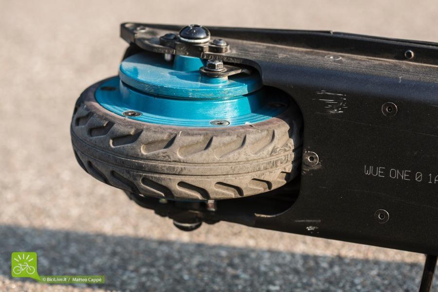 Sempre a riguardo delle ruote, nel dettaglio le coperture, non sono convinto della loro sezione, sono “squadrate”: quando si mantiene una direzione lineare non c’è nessun tipo di problema, ma quando si effettua una curva la tenuta non è delle migliori.