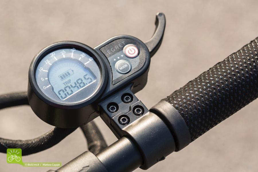 Si avvia semplicemente premendo la leva di accelerazione e permette di raggiungere una velocità massima di 20 km/h per il modello base Egret One V3 (che abbiamo avuto in test) e 35 km/h per il modello Egret One S.