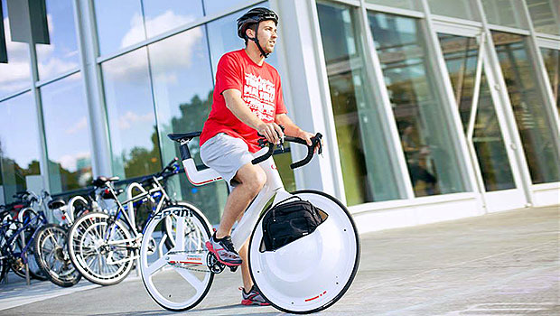 Transport: il bagagliaio è nella ruota della bici Alberto Pezzali 6 Febbraio 2014 Bike News Progettare una bici per le borse, non una borsa per le bici: questa la chiave di lettura che ha permesso di trasformare una ruota in un vero e proprio bagagliaio. La bicicletta è un mezzo davvero intelligente e comodo per spostarsi, ma quando si tratta di portare bagagli di ogni genere, può diventare scomoda. Un team di ricercatori del Georgia Institute of Technology, ha scoperto che moltissime persone non amano per niente le borse messenger e che preferirebbero portare una borsa normale. Dai laboratori PSFK, a New York City, ecco la Transport Bicycle. Con in testa solo questo pensiero, David Hotard, Matthew Campbell e Edwin Collier hanno creato una bicicletta la cui ruota anteriore è adibita a bagagliaio. No, non avete letto male: una bicicletta col bagagliaio! Il loro intento è stato quello di disegnare “una bici intorno alla borsa e non una borsa intorno alla bici” La ruota anteriore è senza mozzo, senza raggi e completamente vuota al suo interno, in maniera da poterci riporre i propri bagagli. Per il momento le informazioni sono poche in quanto si tratta solo di un prototipo, ma garantiscono da NYC che il progetto va avanti: non ci resta che aspettare qualcosa di definitivo! Per approfondire l’argomento: psfk.com