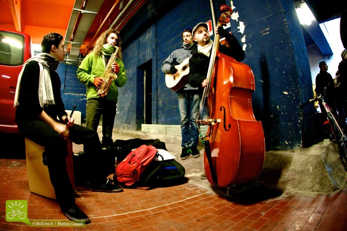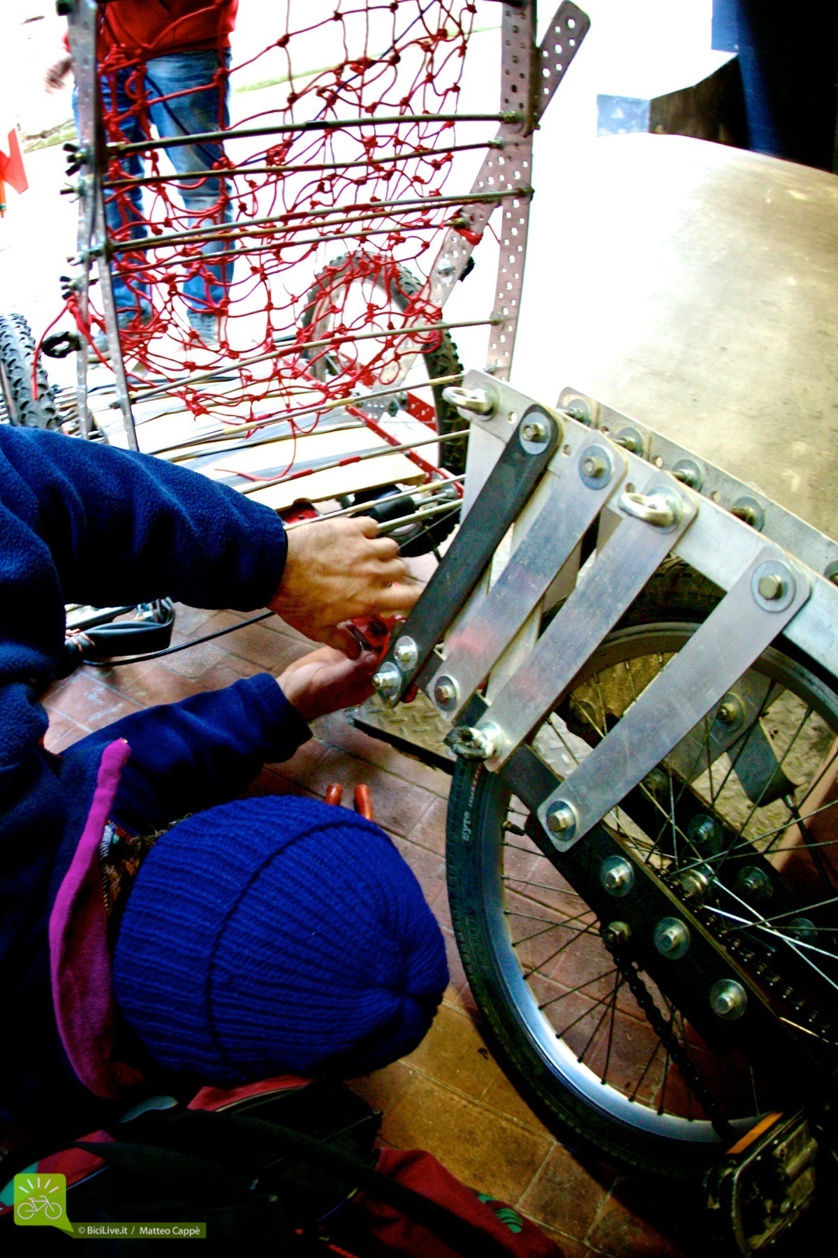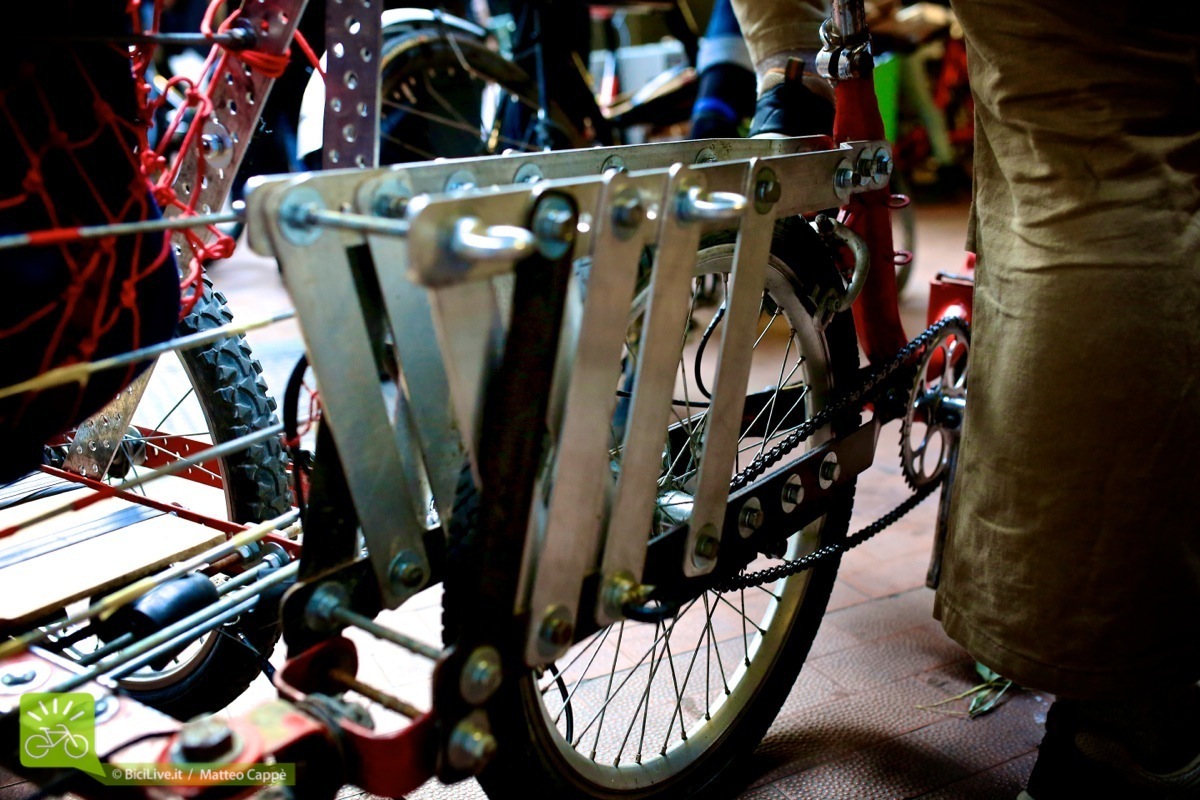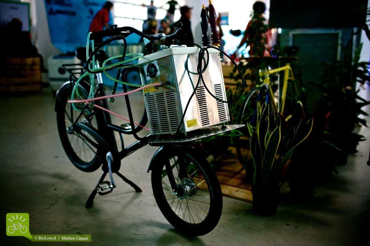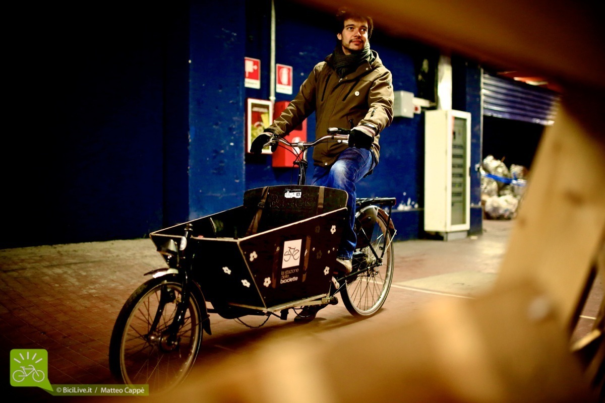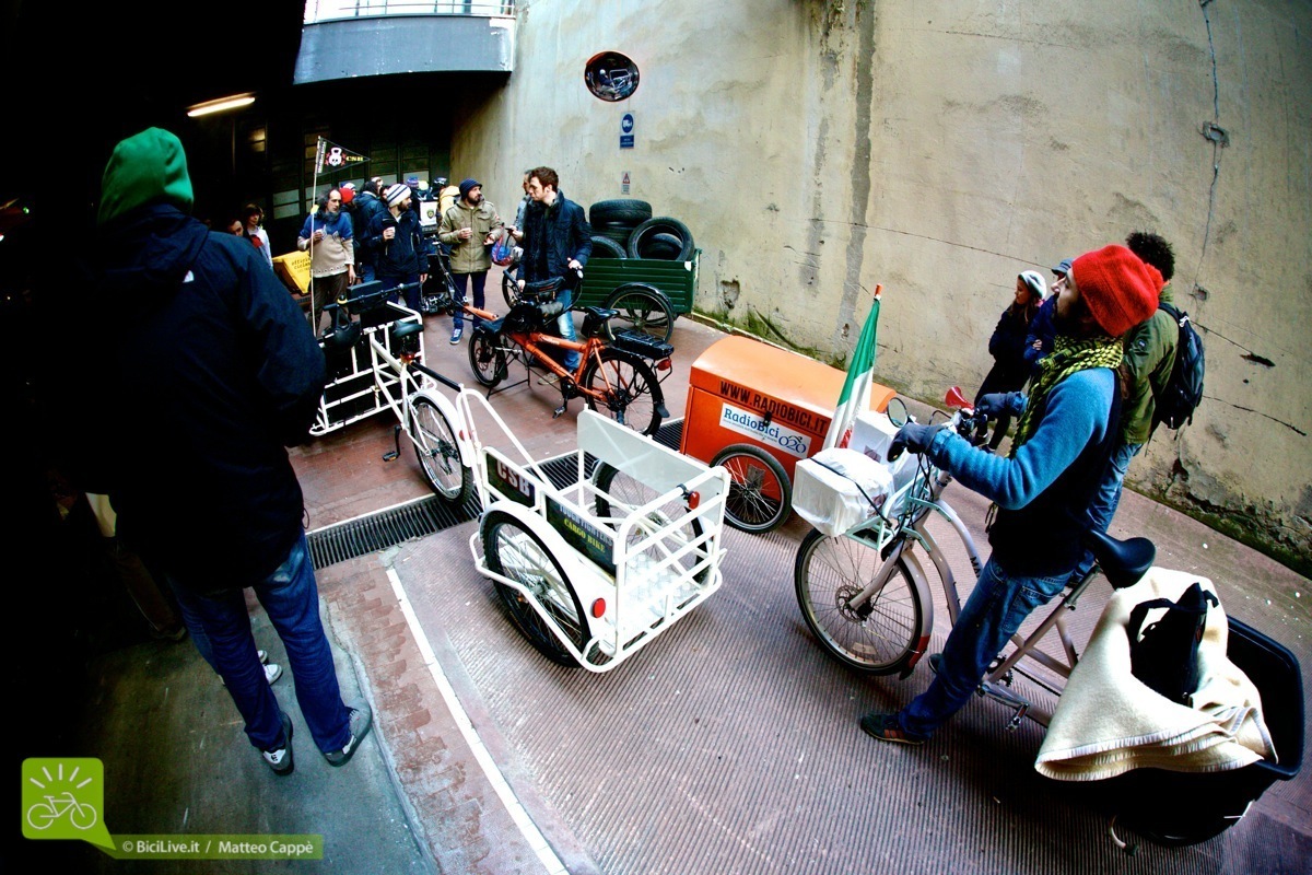 La gara delle bici da carico: Wacky Cargo Race! Matteo Cappè 16 Dicembre 2013 Bike News L’atmosfera era eclettica, ciclisti-urbani-da-soma riuniti per sfidarsi con i loro mezzi Persone e fusti di birra incastrati dentro a pile di pneumatici usati, mani, piedi e braccia che si dimenano, mezzi da gara dei più bizzarri… Sembra il Wacky Race, no anzi, la descrizione di un carico di clandestini stivati in un tir, ma invece è la Cargo Race che si è svolta durante il BFF di Milano ieri pomeriggio nei seminterrati della location di Via Ventura 15. L’atmosfera era eclettica, ciclisti-urbani-da-soma riuniti per sfidarsi con i loro mezzi, quelli che di solito passano quasi inosservati e raramente si vedono in giro, si sono riuniti tutti in questo seminterrato di un vecchio capannone industriale. Ma non c’erano solo bici cargo di ogni tipo, c’era una banda che suonava, lo spillatore per la birra naturalmente trasportato su bici cargo, vin brulè nelle mani di ognuno e un bel numero di spettatori. La Cargo Race si corre a manche di due concorrenti alla volta, definiti A e B; la gara consiste nel riuscire a trasportare più carico possibile, l’unità di misura? Pneumatici. Sì, gomme usate. Ma nelle foto avete già visto delle persone caricate in mezzo alle gomme e pure dei fusti di birra… Ecco, anche le persone e i fusti vengono convertiti in gomme… In che senso? Allora, 30Kg equivale ad una gomma, una persona come Ale, che pesa ad esempio 80kg, si converte in 2,5 gomme! 3 fusti di birra equivalgono a una gomma. Ritornando alla gara, i due concorrenti partono… No, attenzione, partono quando la banda inizia a suonare, poi si dirigono subito all’area di “carico” in cui ci sono le due zone, A e B. Il concorrente A cerca di caricarsi il più possibile e poi deve fare un giro del percorso di gara, che si sviluppa nel seminterrato, tra pilastri di cemento arancioni e mura di mattoni colorate di un blu oltremare. Concluso il giro si ritorna alla zona di carico e scarico… Quando finisce la manche? Naturalmente quando la banda smette di suonare! Se devo dire la verità, da esterno, il tutto sembrava caotico e disorganizzato, ma credo invece che ci fosse della logica e tanta passione in tutta questa pazzesca competizione. Quello che invece mi ha stupito di più è stata l’atmosfera impregnata di genuinità e purezza legata a un solo trait d’union: la passione di tutte le persone presenti per la bicicletta, in tutte le sue forme, anche quelle più bizzarre. Guardatevi la gallery!