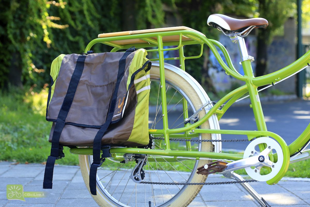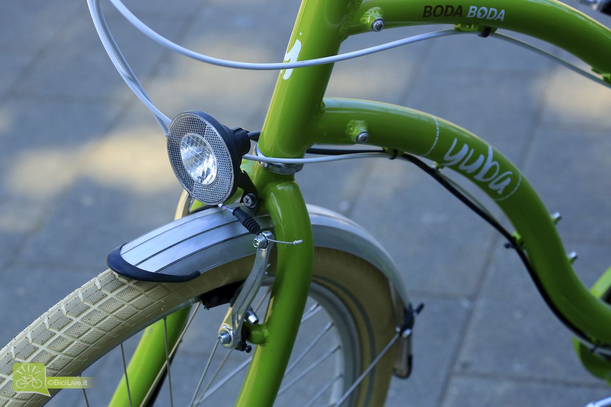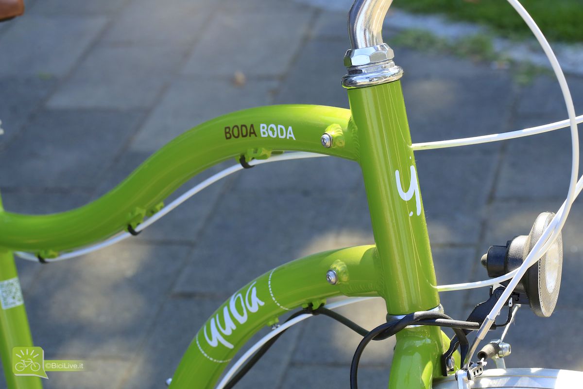 Foto di Matteo CappèBoda Boda: la bici longtail di Yuba per il trasporto merci Matteo Ganassali 22 Dicembre 2014 Anteprime La Boda Boda del marchio Yuba è una bicicletta longtail come XtraCycle ed è la sorella minore del modello El Mundo, che ha un carro ancora più lungo. Su questa bici il carro posteriore un pochino più lungo della norma e un solidissimo portapacchi riescono sia a sostenere carichi non indifferenti quando necessario sia a farla sembrare una bici normale negli altri casi. La piastra portapacchi posteriore è solidissima e molto versatile, e include anche i sostegni laterali e le pedane, tutto ovviamente inglobato nel telaio per garantire la maggior robustezza possibile. È possibile alloggiare le grosse borse (davvero capienti) o anche una tavola da surf! Ovviamente è ottima anche per il trasporto bambini: si possono montare un cuscino, una specie di ringhiera ed anche un manubrio finto dedicato per portare in giro i bambini. I freni sono v-brake (ma si possono avere anche a disco), le manopole in sughero e ha tutte le dotazioni base da citybike. Non ultimo, è ebike-ready: la batteria piatta può essere alloggiata sotto la piastra di legno nel portapacchi posteriore. Due versioni di telaio, differiscono per il tubo “orizzontale”: in un modello è più in basso per facilitare l’uso da parte del pubblico in gonnella. In definitiva la Yuba Boda Boda con il carro allungato è un’ottima bici da tutti i giorni con una linea normale, per l’uso quotidiano se al posto del seggiolino/cestino cerchi qualcosa di più robusto e pratico, senza sconfinare nel “cargo puro”. Sul sito ufficiale www.yubabikes.com è in vendita a prezzi che partono dai 999 dollari. Yuba è un brand creato da Benjamin Sarrazin, padre di famiglia e imprenditore con un amore per la vita all’aria aperta, che dopo essere cresciuto in Francia con la bici in mezzo alle gambe si è dato come mission il portare lo stile di vita ciclistica europea (delle sue parti putroppo, ndr) negli Stati Uniti, dove inizialmente si recava a fare kayaking sullo Yuba River, in California. È proprio da quel fiume che le sue bici hanno preso il nome. È anche ex-socio di Klaus Schröder di Velonom.